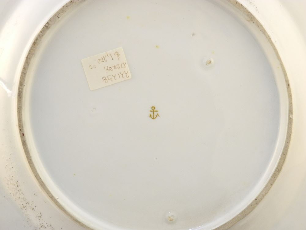 LOT 406 18th Century Chelsea Derby Gold Anchor Scalloped Plate, 8 7/8" Diameter Estimate: $200 - $300 Sold For: $100 Auction Date: Tuesday, November 22 2022 at 6:00 PM