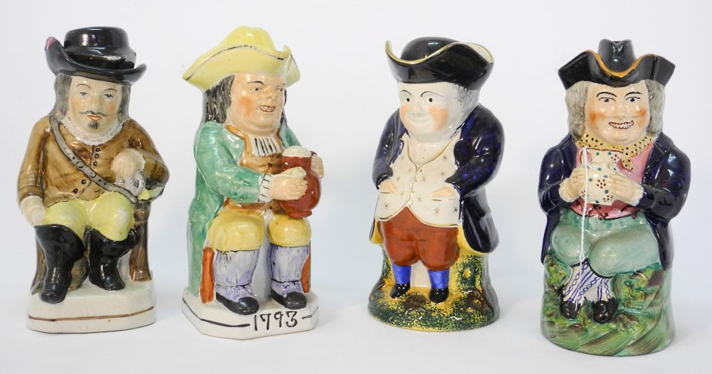 LOT 241 4 18th Century Toby Jugs incl. 1793 & Shakespeare, Each With a Hat, each 10" Tall Estimate: $200 - $400 Sold For: $250 Auction Date: Tuesday, November 22 2022 at 6:00 PM