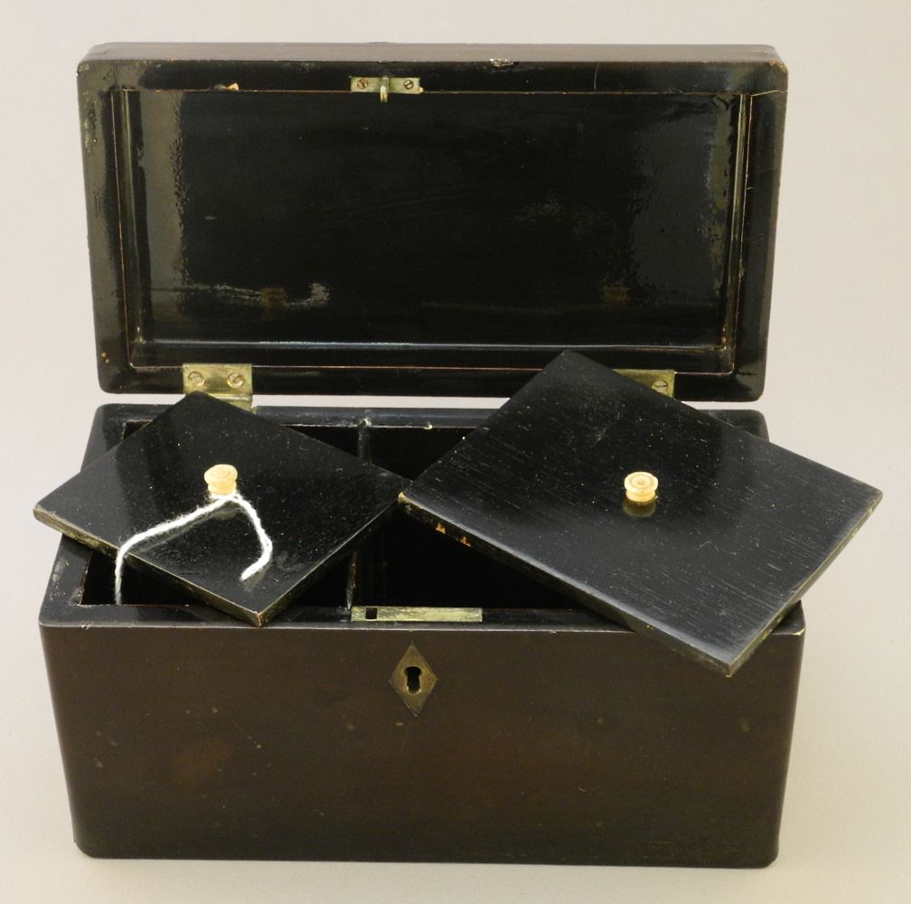 19th Century Chinoiserie Lacquered Partitioned Box, No Export, 8 3/4" Wide