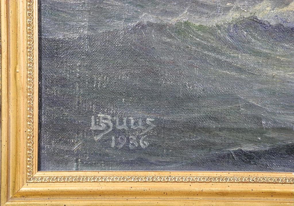 Oil on canvas signed L. Buus, d.1936 27" x 19", "Tall Ship".