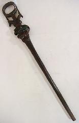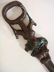 African carved wooden walking stick with two antelope and a lion, length 36 in.