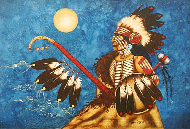 Oil painting on canvas signed by Ojibiway artist Donald Peters, 24"x36", "Warrior".