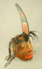 Carved and painted red cedar mask signed Ron Hustin, "Shaman Transforming into a Whale"