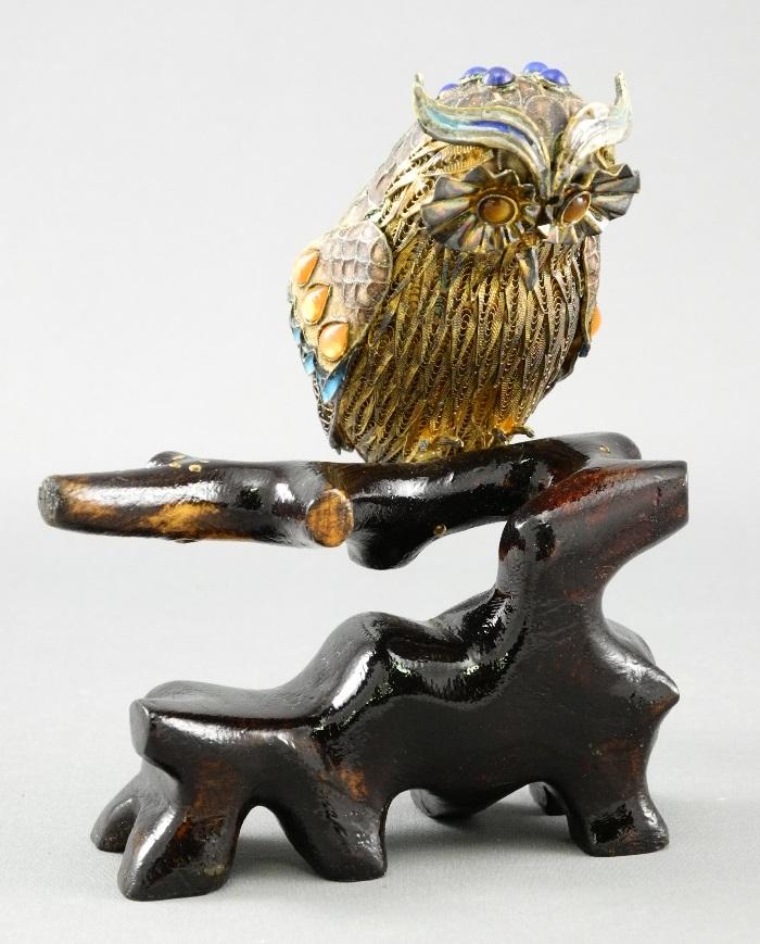 LOT 555 Chinese cloisonne owl on wooden stand in a fitted box. Estimate: $200 - $250 Sold For: $160 Auction Date: Tuesday, November 18 2014 at 6:00 PM