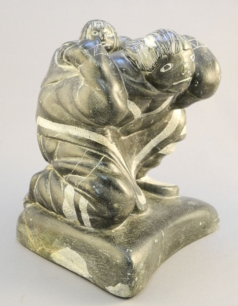 LOT 604 Inuit carved stone figure group of a mother and child signed Sakarais C7 9, 7". Estimate: $125 - $175 Auction Date: Tuesday, August 27 2019 at 6:00 PM