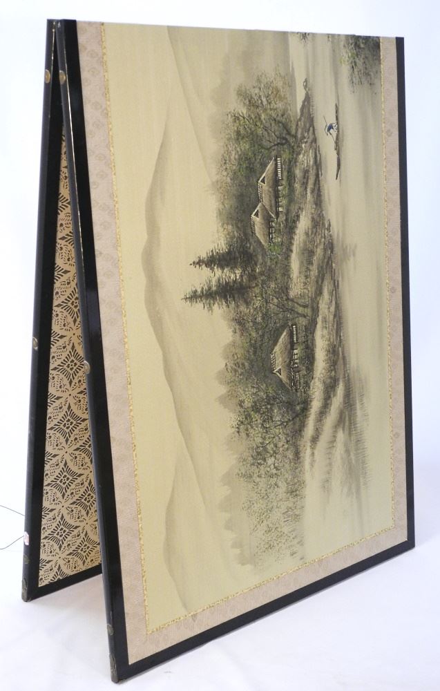 Japanese Bi-Fold Silk Screen, 74" x 24".