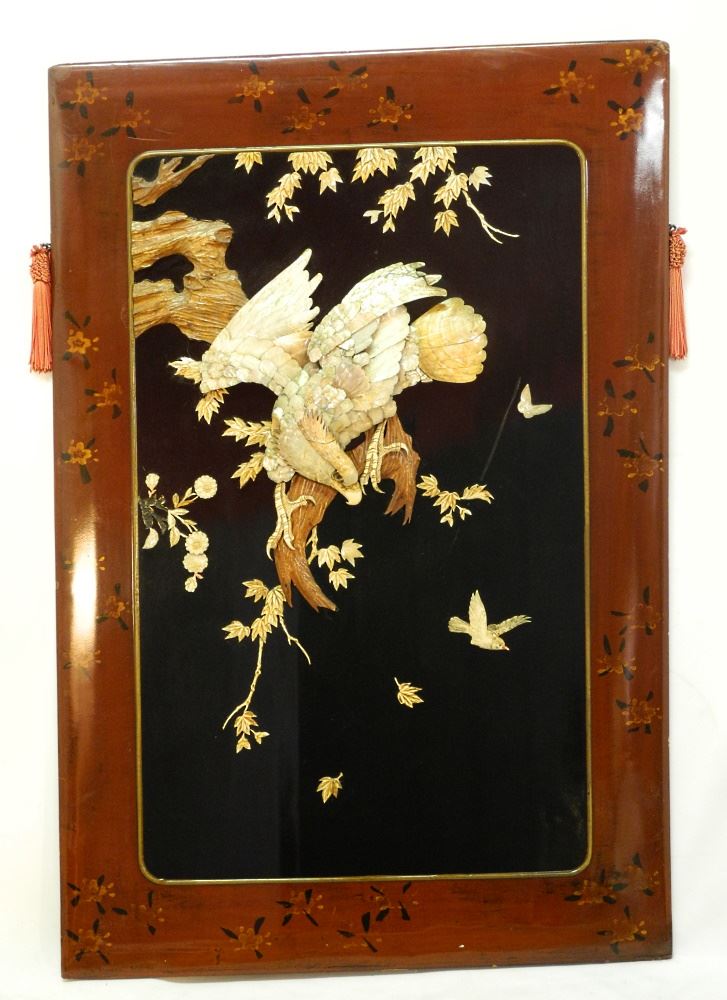 LOT 23 Pair of Japanese Shibayama Panels, 40" x 26 3/4" x 2 1/4", Warpage Noted. Estimate: $200 - $400 Sold For: $350 Auction Date: Tuesday, October 18 2022 at 6:00 PM