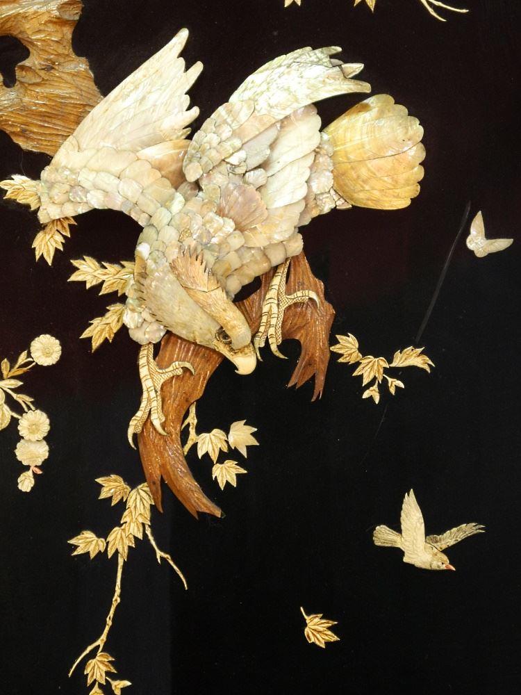 Pair of Japanese Shibayama Panels, 40" x 26 3/4" x 2 1/4", Warpage Noted.