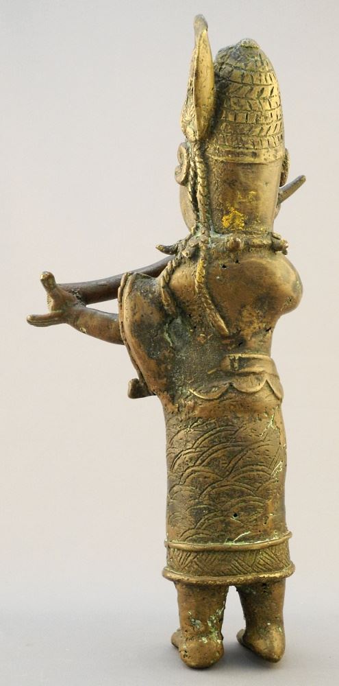 LOT 148 Benin Bronze Musician with Horn, 12 1/2" High. Estimate: $100 - $200 Sold For: $200 Auction Date: Tuesday, October 18 2022 at 6:00 PM