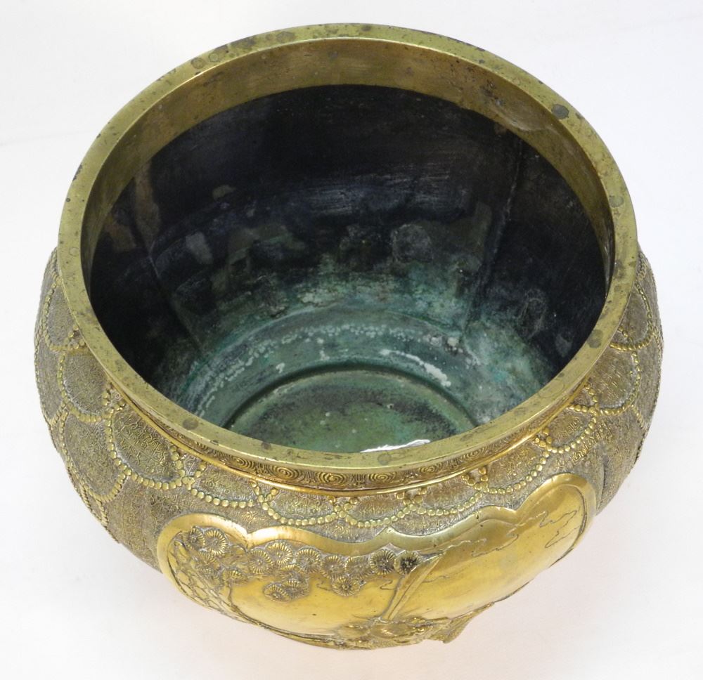 Japanese Brass Jardiniere, Corrosion Noted, 10 1/2" high.