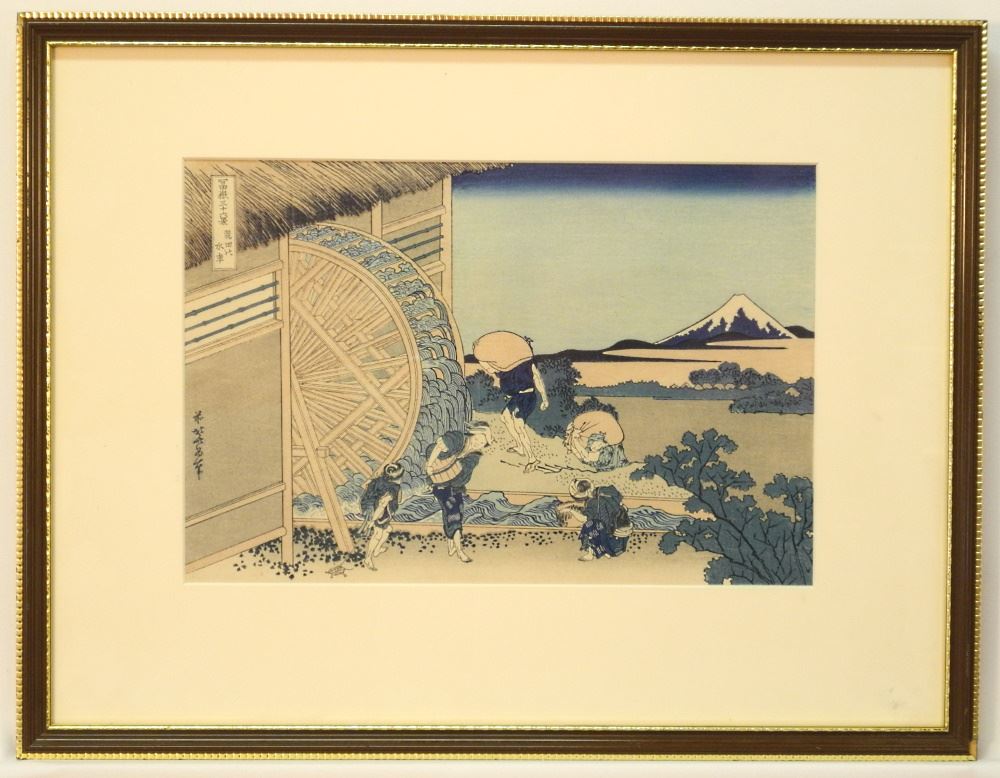 Japanese Woodblock Print After Hokusai, 9 1/2" x 14 1/8", "View of Mt. Fuji".