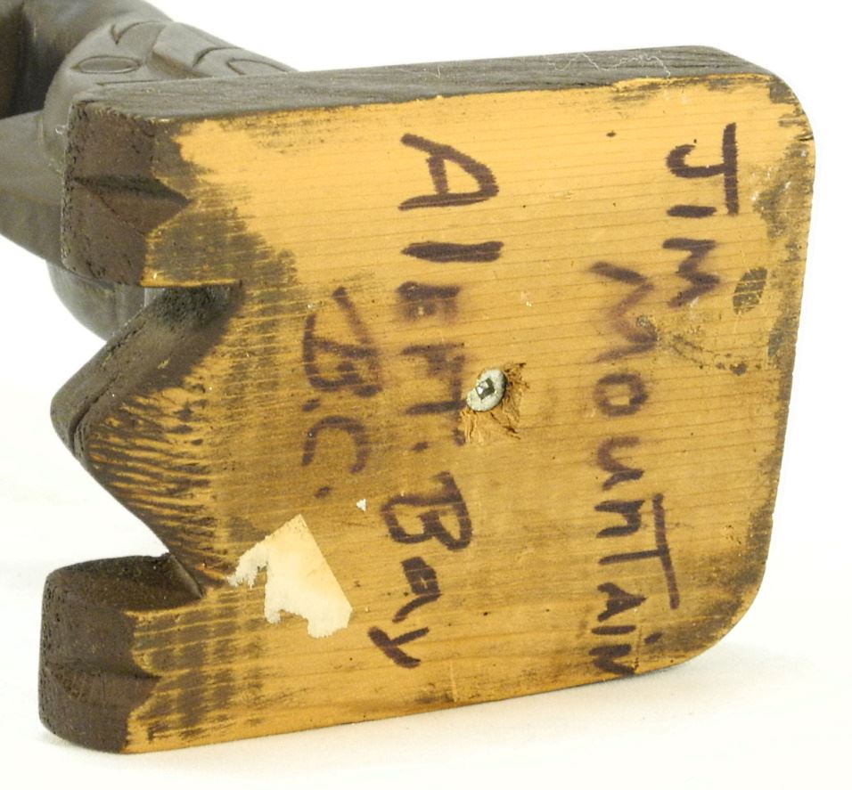 Miniature Totem Pole signed Jim Mountain, Alert Bay, 24 1/4" high.