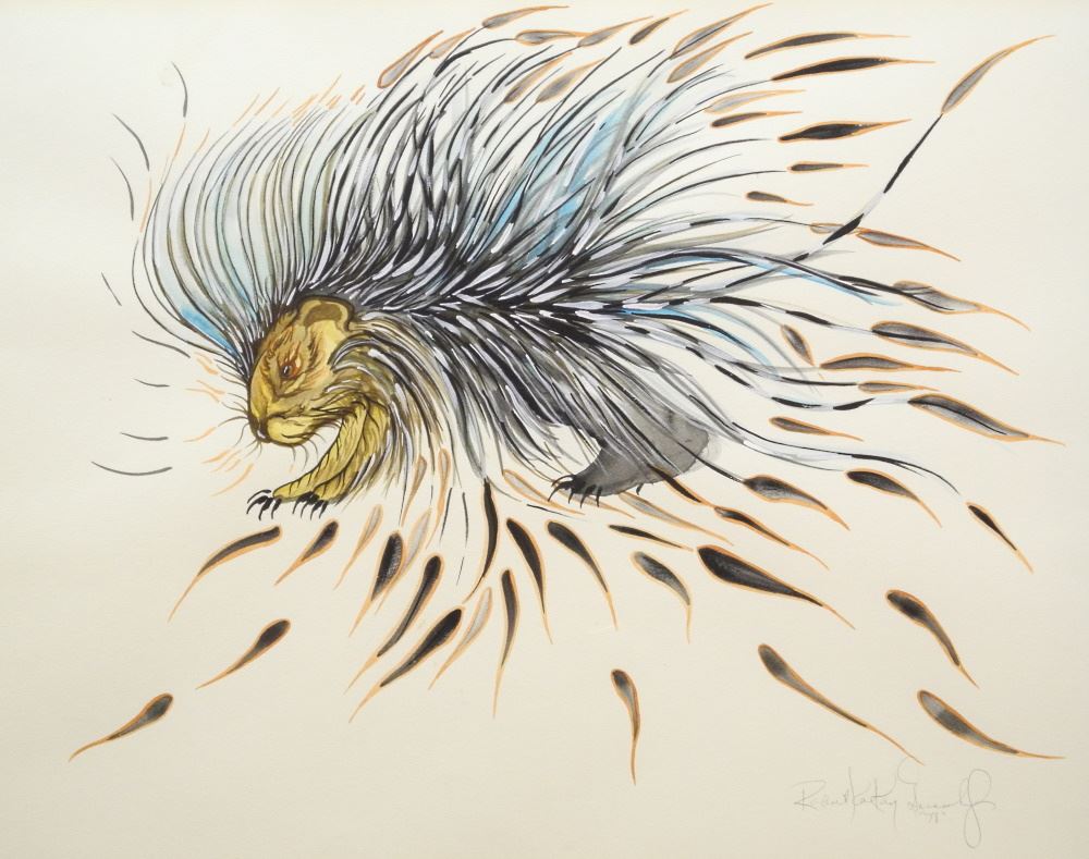 Watercolour Signed Robert Kakaygeesick, 17 1/2" x 23 1/4", - Untitled - Porcupine.