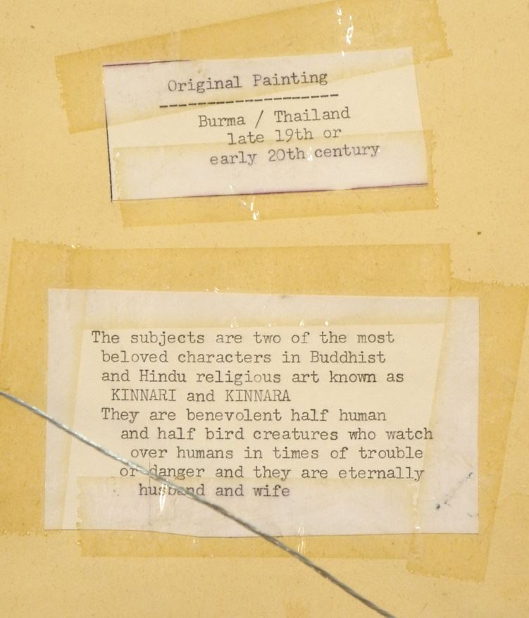 LOT 251 Burmese Oil on Canvas, 12 7/8" x 9 3/4", "Kinnar & Kinnara" Estimate: $60 - $100 Auction Date: Tuesday, October 18 2022 at 6:00 PM