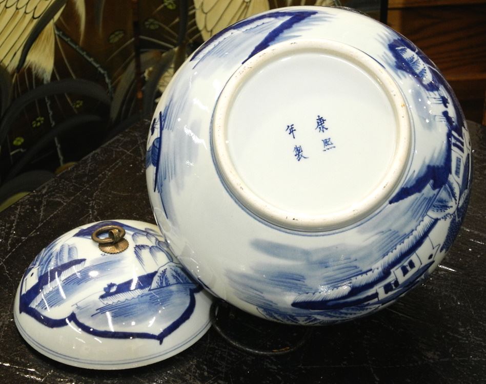 Chinese Blue & White Porcelain Covered Jar, 9 1/2" High.