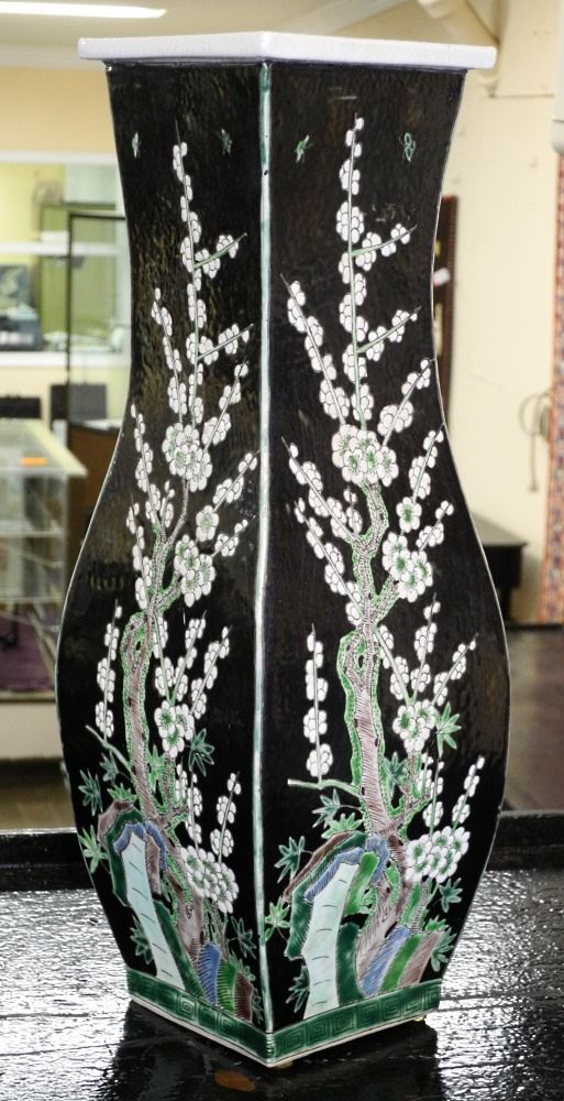 Chinese Famille Verte Square Vase, 16 3/4" High.