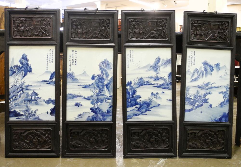 LOT 274 8 Chinese Blue & White Porcelain Wall Plaques, 30 1/2" High. Estimate: $80 - $120 Sold For: $350 Auction Date: Tuesday, October 18 2022 at 6:00 PM