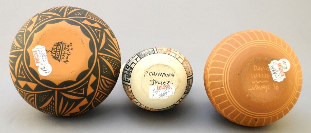 3 Southwest Pottery Vessels: T. Chino/ P. Chihama/ D. Willie, 3 1/2" - 5 1/4".
