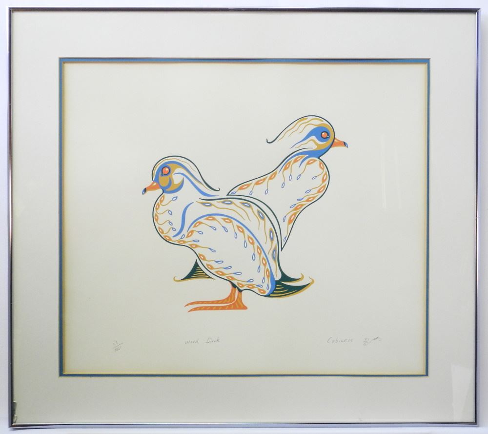 LOT 163 Ojibway Serigraph Signed (Eddy) Cobiness, 17 7/8" x 20 3/4", "Wood Duck". Estimate: $80 - $140 Sold For: $80 Auction Date: Tuesday, October 18 2022 at 6:00 PM