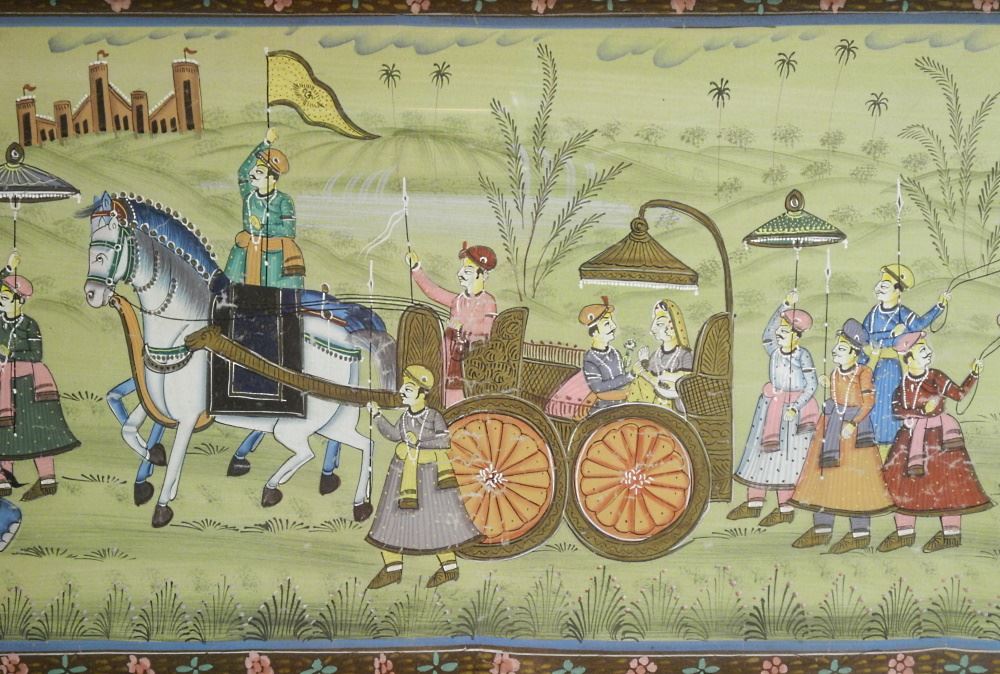 LOT 100 South Asian Pigment on Textile, 12 3/4" x 37 3/4", "Processional Scene". Estimate: $200 - $300 Auction Date: Tuesday, October 18 2022 at 6:00 PM