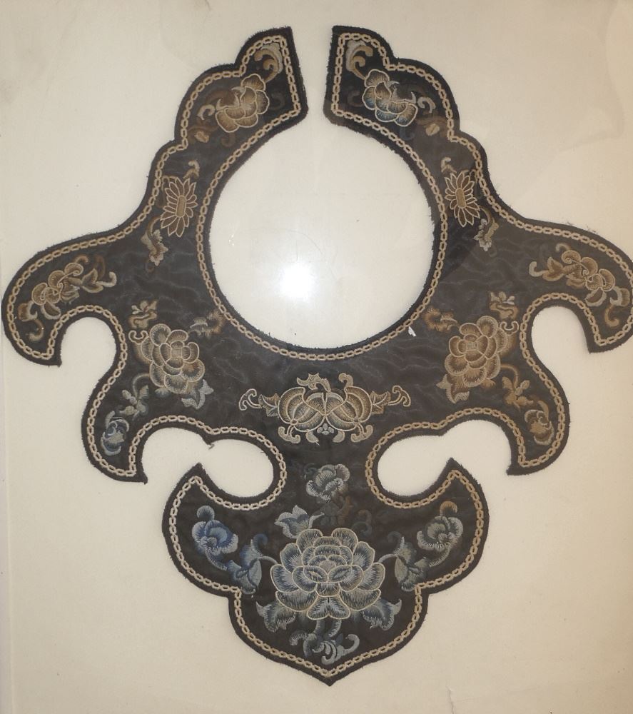 LOT 337 Chinese Embroidery of Shoulder Cover, 15" x 14 1/2", 20th C. Estimate: $150 - $200 Auction Date: Tuesday, October 18 2022 at 6:00 PM