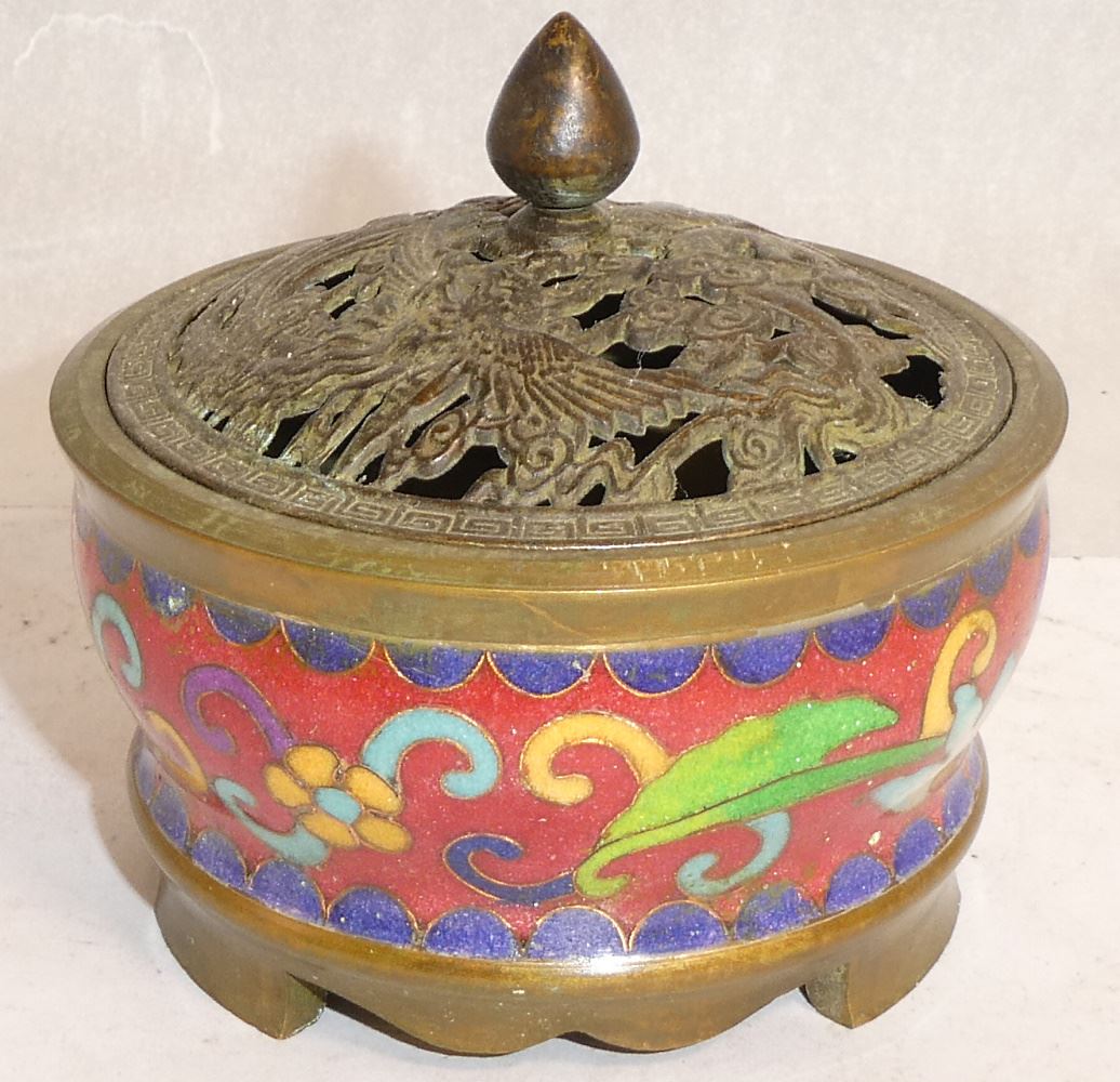 LOT 203 Copper Based Cloisonne Incense Burner, H 2". Estimate: $150 - $180 Sold For: $30 Auction Date: Tuesday, May 30 2023 at 4:00 PM