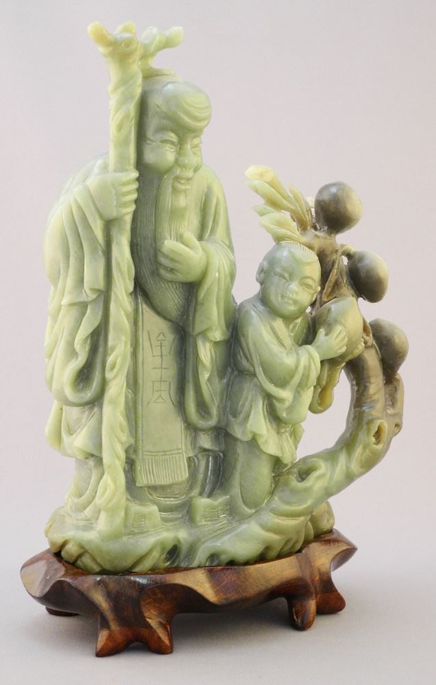 LOT 228 Chinese Jade Figure of Shou Lao and Attendant Child, 8 3/4". Estimate: $300 - $400 Auction Date: Tuesday, May 30 2023 at 4:00 PM