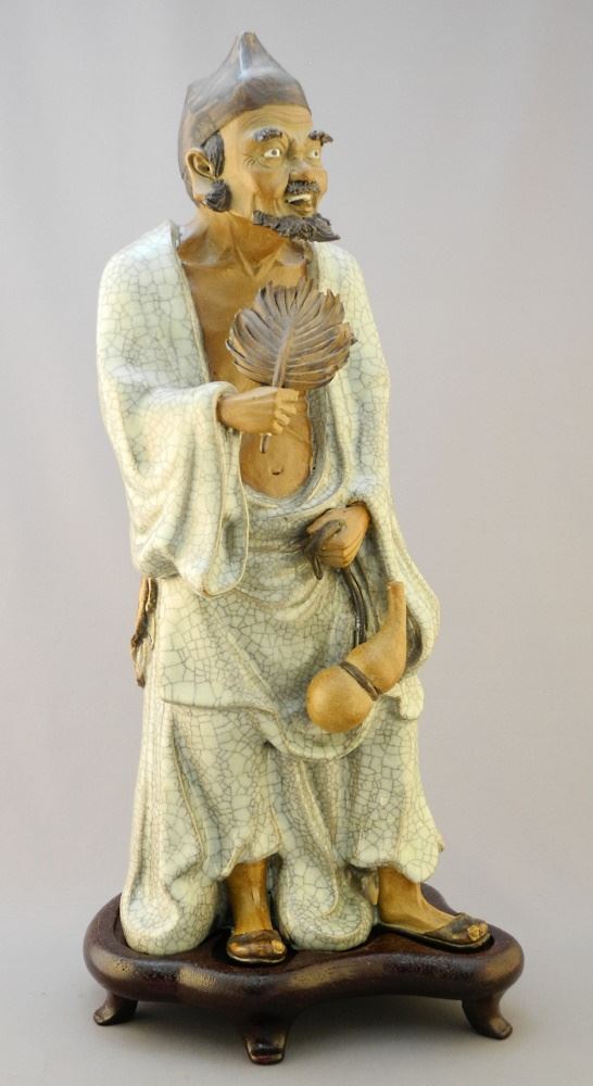 Chinese Shiwan Ware Figure, "Crackle Glaze Robe", with Stand, 16 1/2".