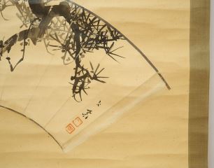 Japanese Scroll "Fan" Painting, sight, 23 5/8" x 20 7/8".