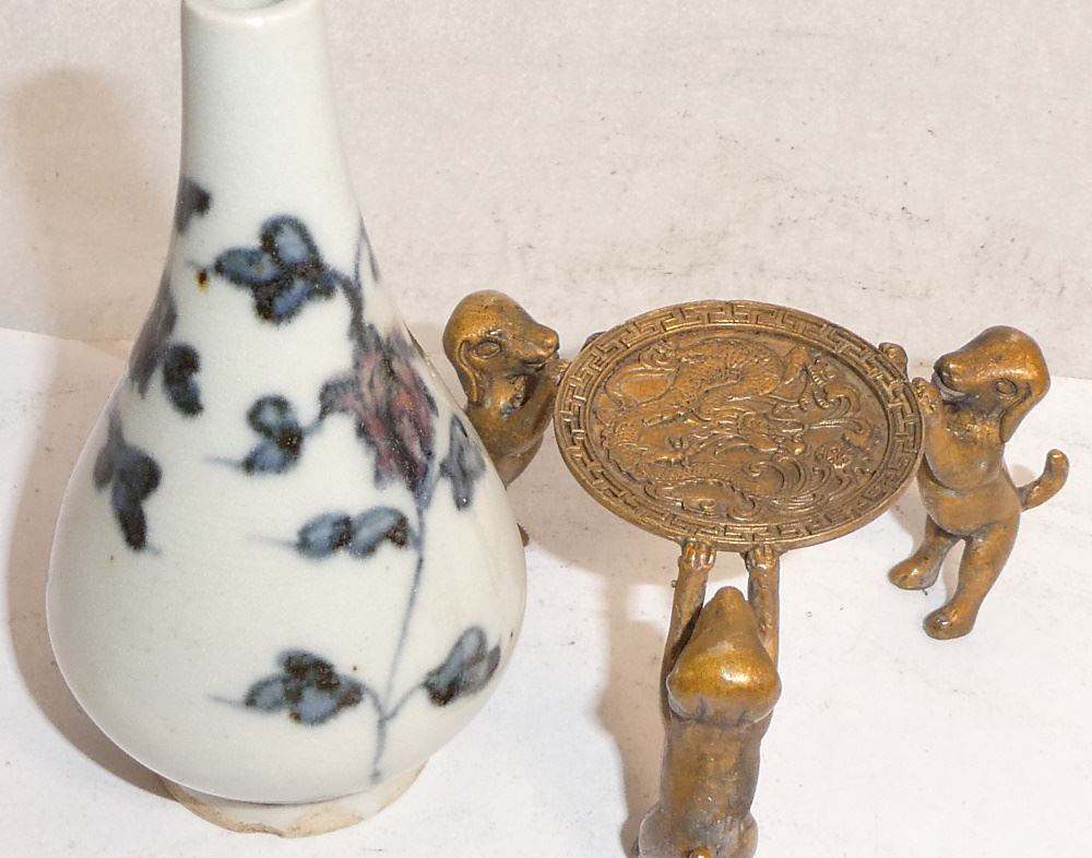 20th C. Blue & White Scholar Jar on Stand, 3 3/4".