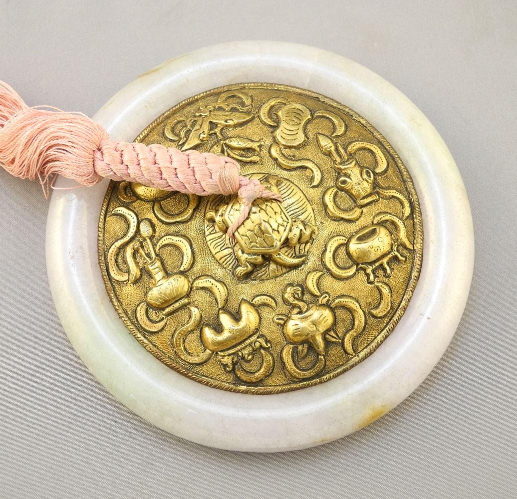 LOT 185 Chinese Bronze & Jade Handle Hand Mirror, 3 1/2" diameter. Estimate: $250 - $350 Auction Date: Tuesday, July 25 2023 at 4:00 PM