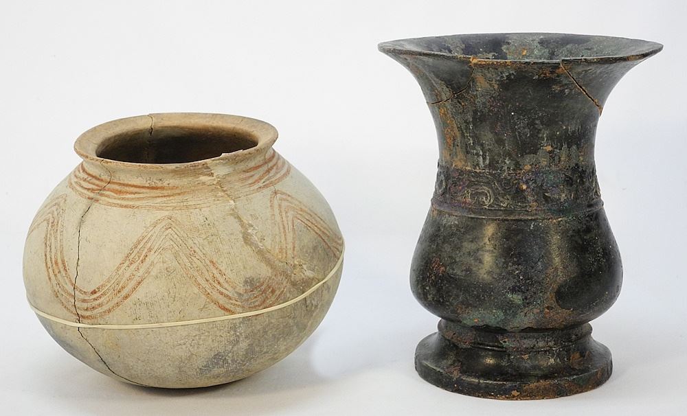 LOT 117 2 Fragmentary Chinese Ceramics: Neolithic (2pces, 7"H) / Molded Archaic (3pces, 9 1/2", 8" Estimate: $100 - $200 Sold For: $70 Auction Date: Tuesday, July 25 2023 at 4:00 PM