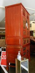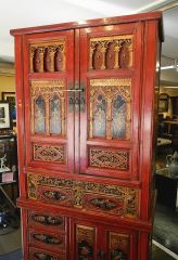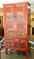 Chinese Scarlet Lacquer Fretwork High Cupboard, 76 1/2"H.
