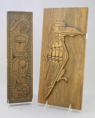 LOT 124 2 Northwest Coast Carved Cedar Plaques (1 signed indistinctly) / Grass Basket, 14 1/2"H Estimate: $50 - $60 Sold For: $120 Auction Date: Tuesday, July 25 2023 at 4:00 PM