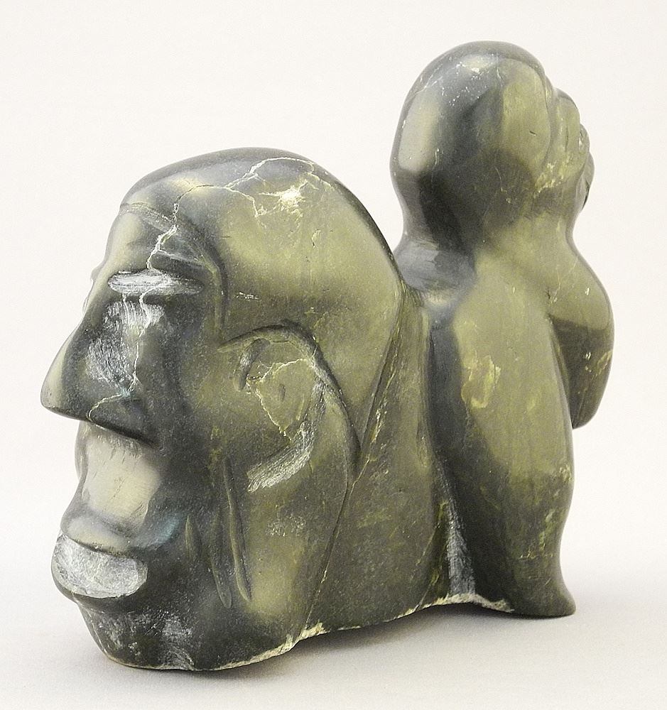 LOT 68 Inuit Transformational Carving, 5" x 6" x 2 1/4", Unidentified signed with Syllabics. Estimate: $60 - $100 Sold For: $40 Auction Date: Tuesday, July 25 2023 at 4:00 PM