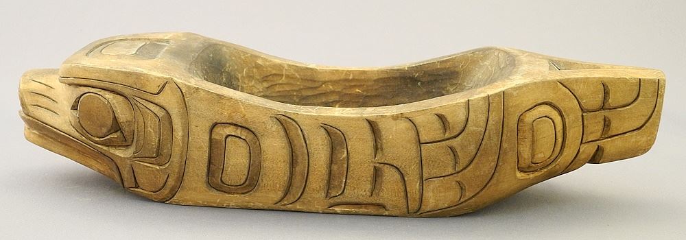 Kwagiulth Carving signed Tom Whonnock, 12"L, "Seal Bowl".