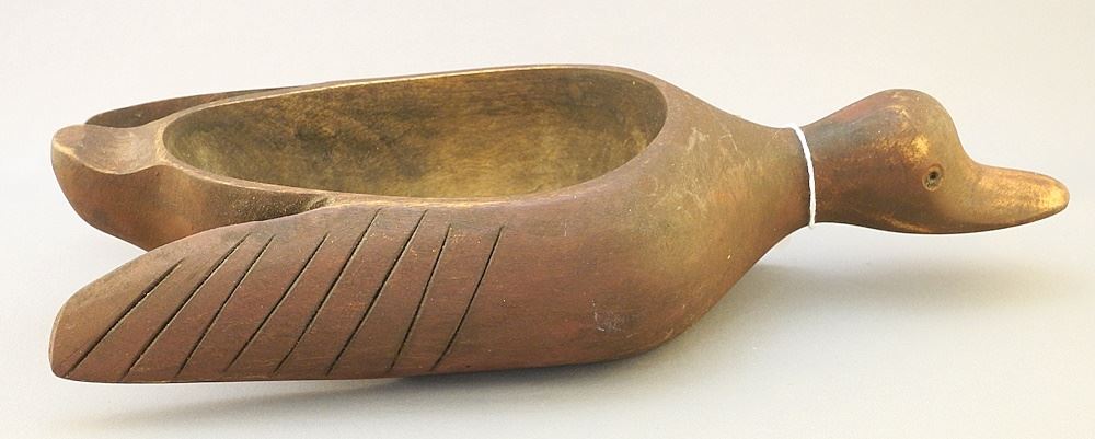 LOT 100 Carved Wood Bird Bowl with Red Finish, 13 3/8"L. Estimate: $100 - $200 Sold For: $100 Auction Date: Tuesday, July 25 2023 at 4:00 PM