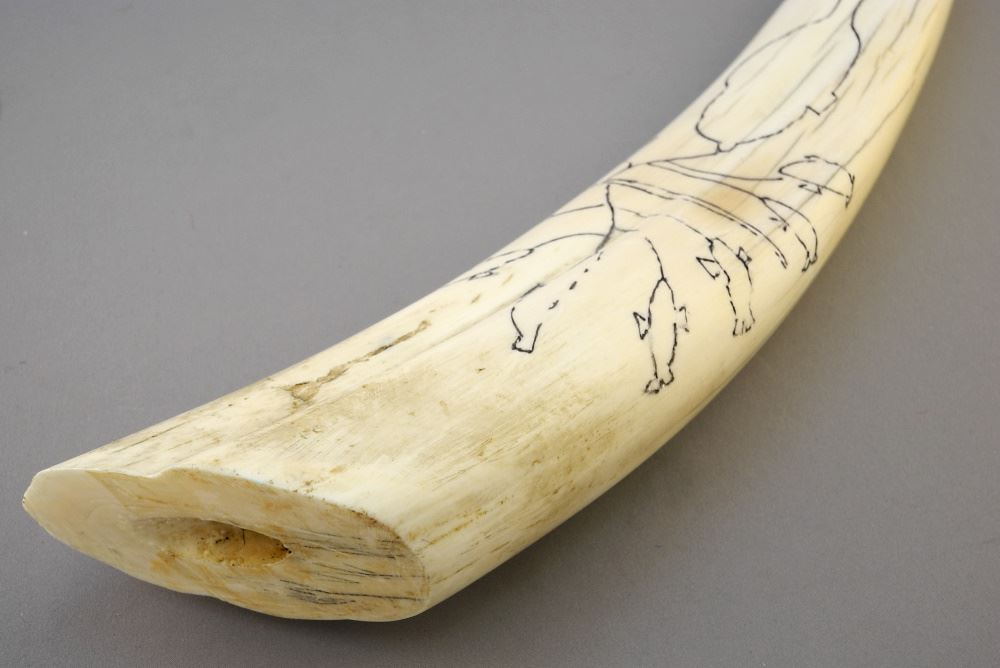 Scrimshaw Walrus Tusk, 17 1/4".