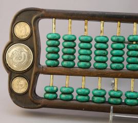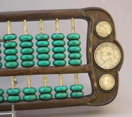 Chinese Coin Inset and Turquoise Abacus, 16 3/8"W