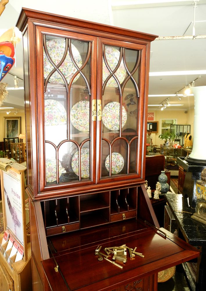Asian Rosewood Secretary Bookcase, 2 Sections, approx. 84" h.