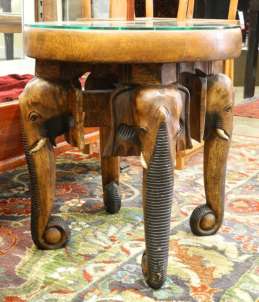 LOT 180 African Elephant Table, 20 3/8 x 19" diam. Estimate: $50 - $60 Sold For: $225 Auction Date: Tuesday, July 25 2023 at 4:00 PM