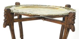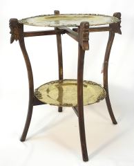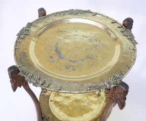 Chinese Tiered Brass Folding Tray Table, 23 3/8 x 21 1/2" diam.