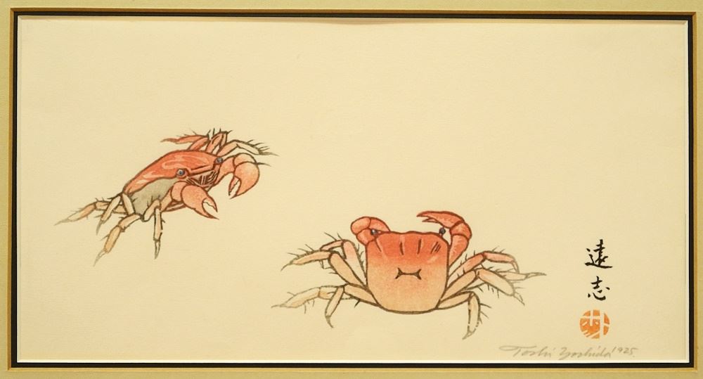 Woodblock Print Signed by Toshi Yoshida 1925, Posthumous Ed. "Crabs"