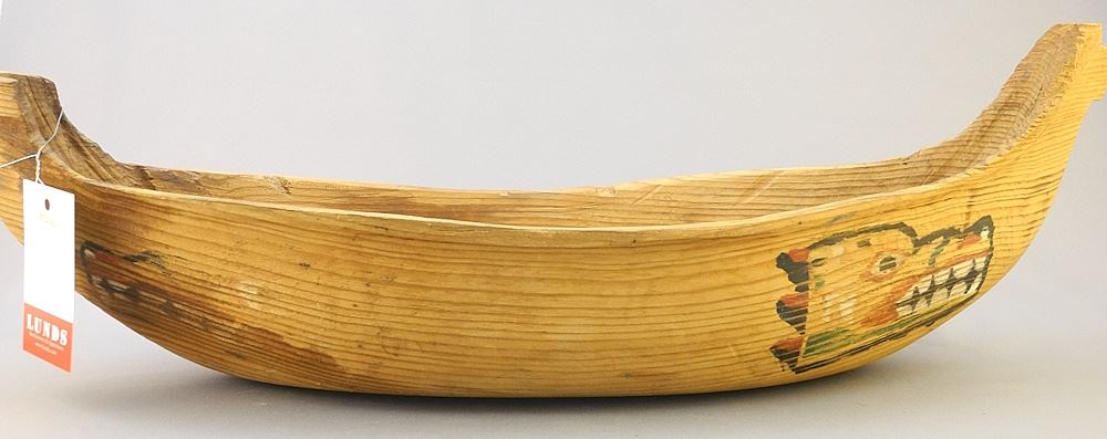 Nuu-Chah-Nulth Model Canoe with Painted Designs, 20 1/2"L.