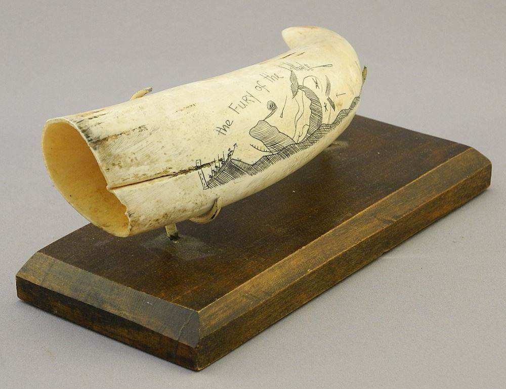 Alaskan Scrimshaw Whales Tooth, "The Fury of the Whale", 5 3/4"L, No Export.
