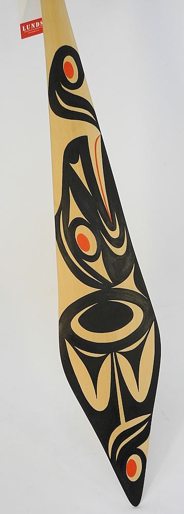 Snuneymuxw White Cedar Paddle signed Thomas Jones 2019, 54 1/2"L.