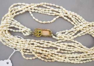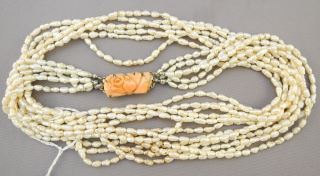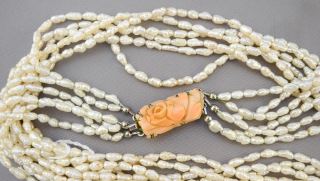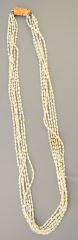 6 Strand Freshwater Pearl Necklace, 30" l. with Coral Clasp.
