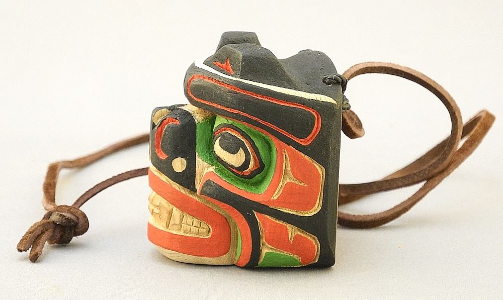Miniature Kwagiulth Mask Pendant signed J.(John Henry) Hunt, 1 5/8"H.