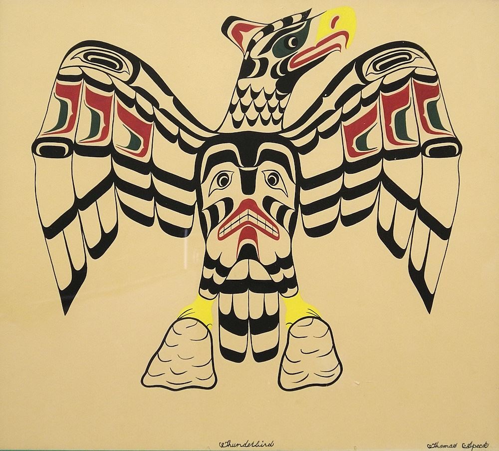 LOT 65 Mixed Media Paper signed Thomas Speck, 13 5/8" x 15 3/8", "Thunderbird" (toning note Estimate: $60 - $100 Sold For: $100 Auction Date: Tuesday, July 25 2023 at 4:00 PM