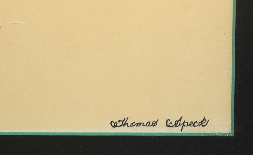 LOT 65 Mixed Media Paper signed Thomas Speck, 13 5/8" x 15 3/8", "Thunderbird" (toning note Estimate: $60 - $100 Sold For: $100 Auction Date: Tuesday, July 25 2023 at 4:00 PM